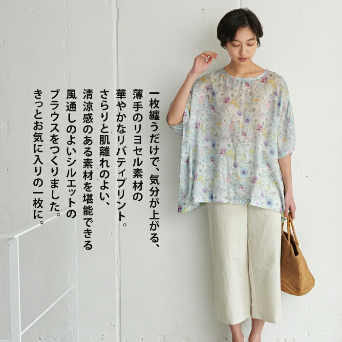 [リバティ ブラウス レディース ] リバティプリント リヨセル100% オーバーブラウス / 日本製 メール便可 40代 50代 60代 30代女性 ファッション プルオーバー 天然素材 ボートネック 五分袖